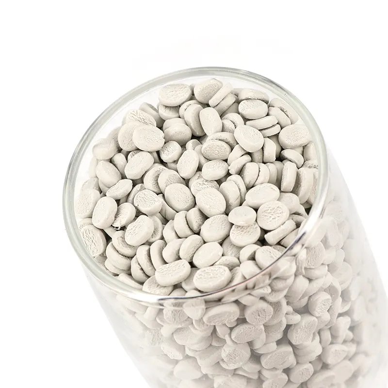 தயாரிப்பு விளக்கம்: சைனா ஃபில்டு மாஸ்டர்பேட்ச் என்பது கேரியர் பிசின், ஃபில்லர்கள் (கால்சியம் கார்பனேட், டால்கம் பவுடர் போன்றவை) மற்றும் சேர்க்கைகள் (சிதறல்கள், மேற்பரப்பு சிகிச்சை முகவர்கள் போன்றவை) கொண்ட பிளாஸ்டிக் செயலாக்க உதவியாகும். இது அதிக செறிவு கொண்ட கலப்படங்கள் மற்றும் பிசின்களை ப்ரீமிக்ஸ் செய்வதன் மூலம் துகள்களாக உருவாக்கப்படுகிறது, மேலும் செயலாக்க செயல்திறனை மேம்படுத்தவும் செலவுகளைக் குறைக்கவும் பிளாஸ்டிக் மோல்டிங்கின் போது அடிப்படை பிசின் விகிதத்தில் சேர்க்கப்படுகிறது. கேரியர் பிசின் மேட்ரிக்ஸ் பிசினுடன் இணக்கமாக இருக்க வேண்டும் மற்றும் பொருத்தமான உருகுநிலையைக் கொண்டிருக்க வேண்டும், அதே நேரத்தில் சேர்க்கைகள் நிரப்பிகளின் சீரான சிதறலை உறுதி செய்கின்றன. இந்த பொருள் திரைப்படங்கள், நெய்த பைகள் மற்றும் ஊசி வடிவ பொருட்கள் போன்ற துறைகளில் பரவலாகப் பயன்படுத்தப்படுகிறது. இது விறைப்புத்தன்மையை அதிகரிக்கலாம் மற்றும் சுருக்க விகிதத்தை குறைக்கலாம், ஆனால் இது வெளிப்படைத்தன்மை மற்றும் கடினத்தன்மையை பாதிக்கலாம்.